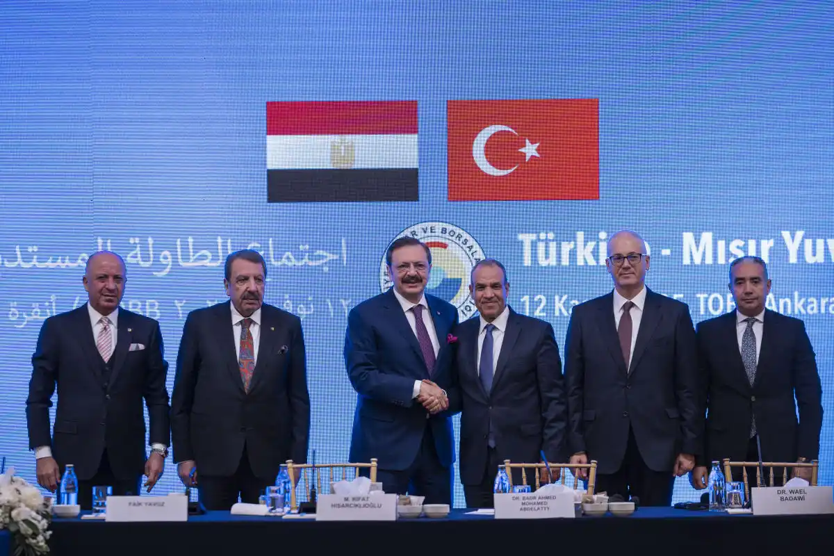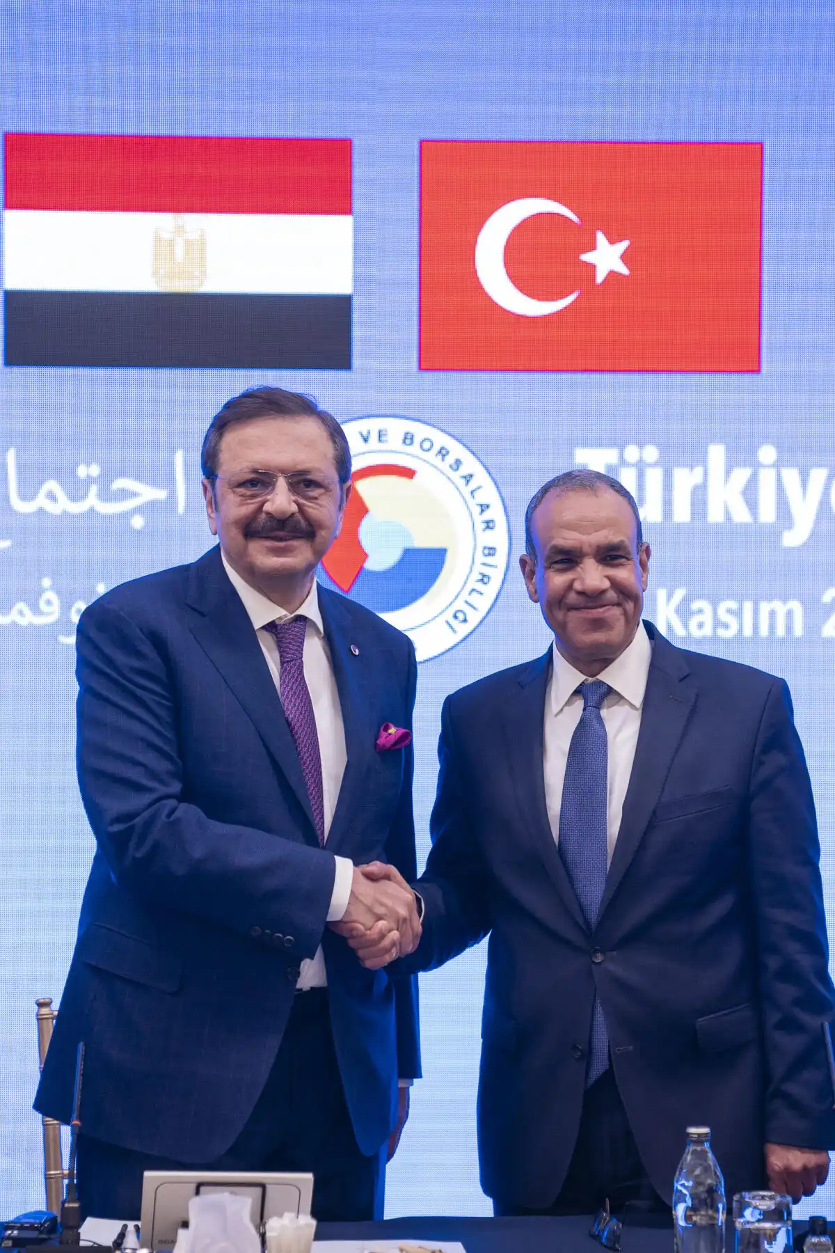 Mısır'ın Türkiye'nin Afrika’daki en büyük ticaret ortağı olduğunu vurgulayan Hisarcıklıoğlu, Türkiye'nin de Mısır'ın en büyük ihracat pazarlarından olduğunu işaret ederek, "Ticaretimiz için Devlet Başkanlarımızın belirlediği orta vadede 15 milyar dolar ticaret hedefini destekliyoruz. Bunun gerçekçi bir hedef olduğuna inanıyoruz. Müteahhitlik alanında ciddi fırsatlar olduğuna inanıyoruz. Dünyanın En Büyük 250 Uluslararası Müteahhidinden 45’inin Türk firması olmasından gurur duyuyoruz. Başta demiryolları olmak üzere, ulaşım alanında hız kazanan alt yapı projelerinde Türk firmaları olarak yer almak isteriz. Mısırlı firmalarla, Afrika ve Suriye başta olmak üzere Ortadoğu’da ve üçüncü ülkelerde işbirliği fırsatlarımızın olduğuna inanıyoruz." değerlendirmesinde bulundu.