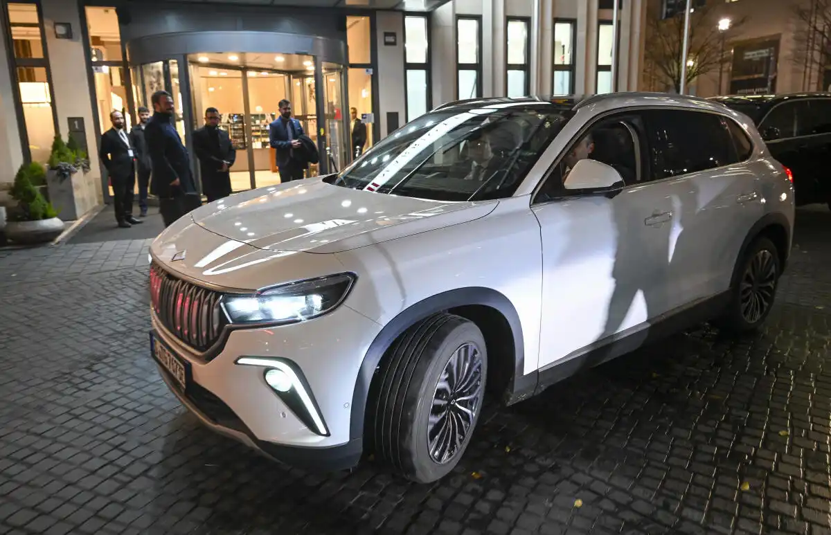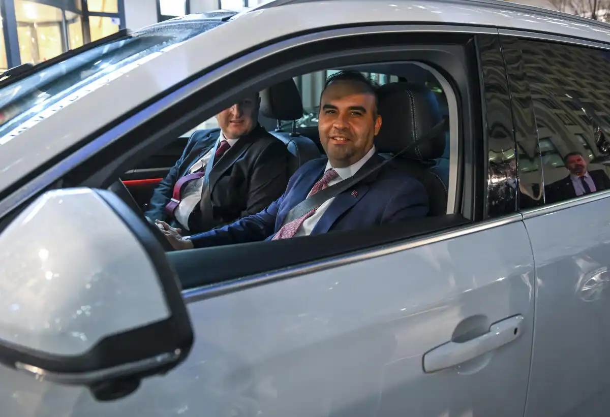 Öte yandan, Bakan Kacır, havalimanından Alman-Türk Otomotiv Zirvesi’nin düzenlendiği otele Togg ile geldi.