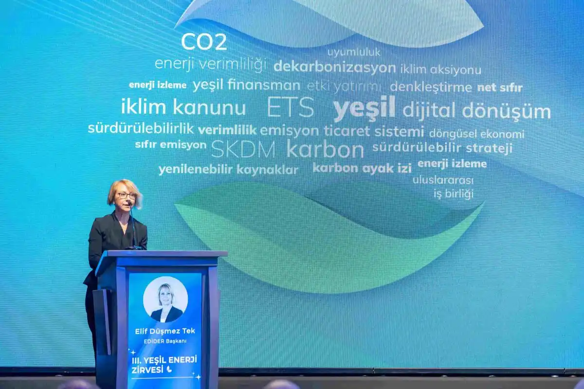 Açıklamada zirvedeki konuşmasına yer verilen Ticaret Bakanlığı AB Tek Pazar ve Yeşil Mutabakat Dairesi Başkanı Elif Taşyürek, Türkiye'de Emisyon Ticaret Sistemi'nin 1 Ocak 2026 itibarıyla uygulamaya alınacağını ifade ederek, şunları kaydetti: