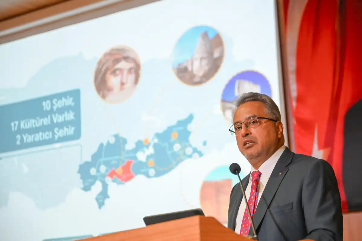 "Bugün vizyonları, ufukları ve stratejileriyle bu önemli çalışmada ülkemizin en önemli marka değerini yöneten sizler bizim için en kıymetli hazinesiniz. Kültürel mirasımız da diğer önemli hazinemiz. Bugün iki hazineyi bir araya getirip birleştirdik. Göreceksiniz ki kentimiz bütün ihtişamıyla, esnafıyla, sanayisiyle akıllı, yeşil ve dirençli şehir hedefiyle ayakta ve bizim size ihtiyacımız var. Sizin bu güçlü duruş ve tanıtım ağınıza ihtiyacımız var. Özellikle şehir içindeki lojistik destekle bizim hedefimiz Asya turistini buraya getirmek. Çünkü Asya turisti kum, güneş, deniz istemiyor, tarih ve medeniyet istiyor."